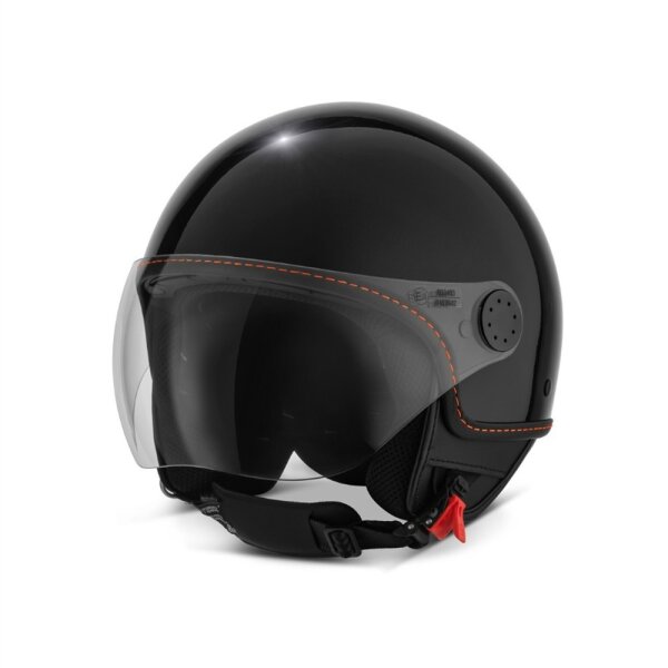 Demi-Jet-Helm aus ABS-Material mit ökogenähtem Leder auf der Schale. 2 mm transparentes Visier mit Anti-Kratz-Behandlung und Aluminiumschnallen. Eingraviertes farblich passendes Vespa-Logo auf der Rückschale. Mikrometrisches Rückhaltesystem mit Diebstahlsicherungsring. Bessere Passform: innovatives, atmungsaktives Innenfutter aus 3D-Gewebe. Innenfutter: waschbar und herausnehmbar. ECE 22.06-Homologation. Hergestellt in ITALIEN.